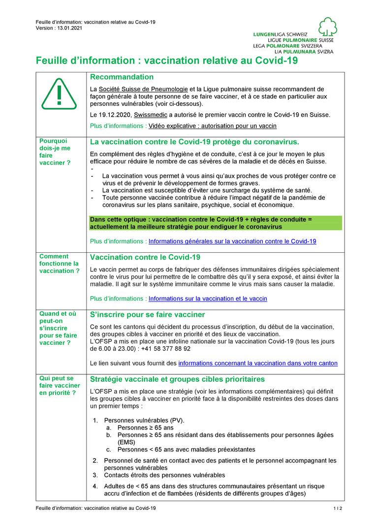 Feuille D Information Vaccination Relative Au Covid 19 Pour Les Personnes Avec Une Maladie Des Poumons Et Des Voies Respiratoires